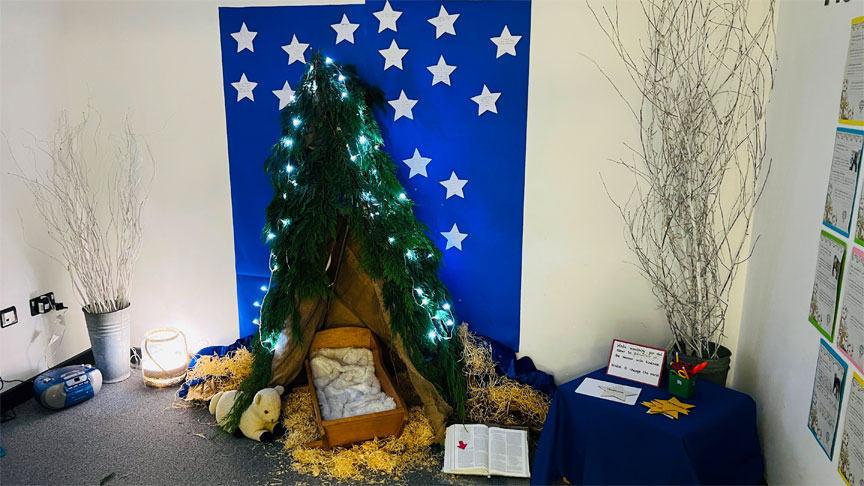 During Advent and Christmas, the Prayer Room was decorated to invite children to think about an act of kindness. This was to prepare themselves for the birth of Jesus. The children enjoyed writing these on a star and sticking them all around our crib. After Christmas, the children were asked to think about what gift they would have given to the new born Jesus, if, like the Wise Men, they had had a chance to kneel in front of Him and adore Him.